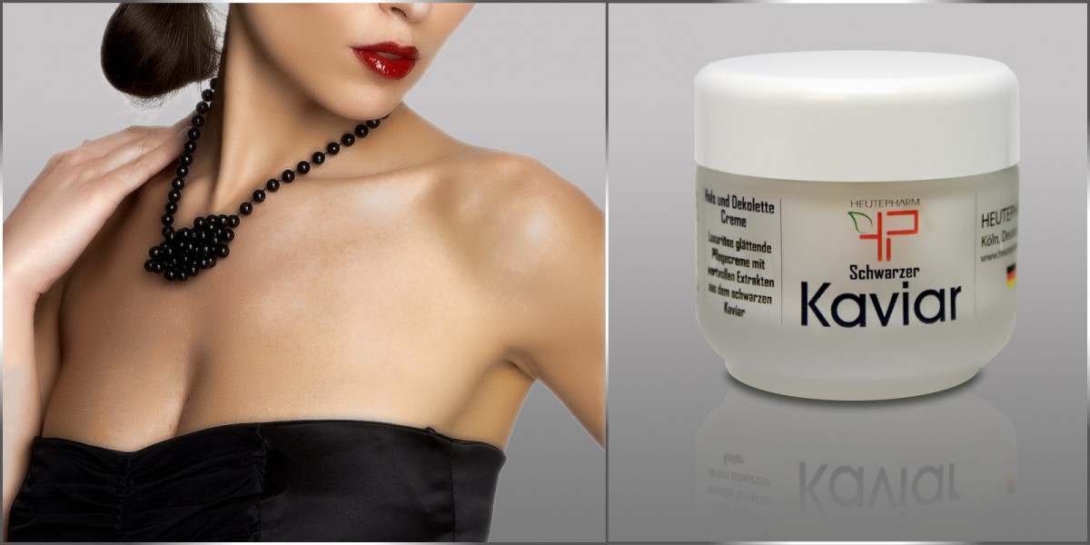 Hals und Dekolette Creme - luxuriöse glättende Pflegecreme mit wertvollen Extrakten aus dem schwarzem Kaviar.